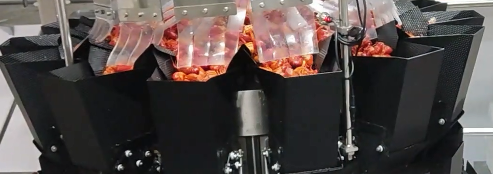 Μηχανή συσκευασίας δίσκων ζύγισης πολλαπλών κεφαλών υψηλής ταχύτητας για καραβίδες