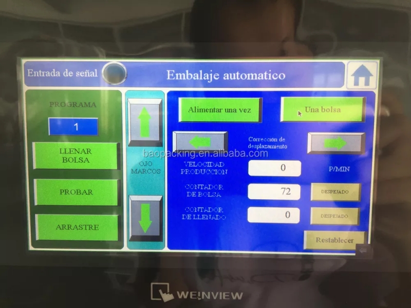 Dans la nouvelle conception, lorsque vous déboguez la machine, vous pouvez ajuster l'écran pour vous adapter. Grand écran tactile couleur et peut enregistrer 8 groupes de paramètres pour différentes spécifications d'emballage.