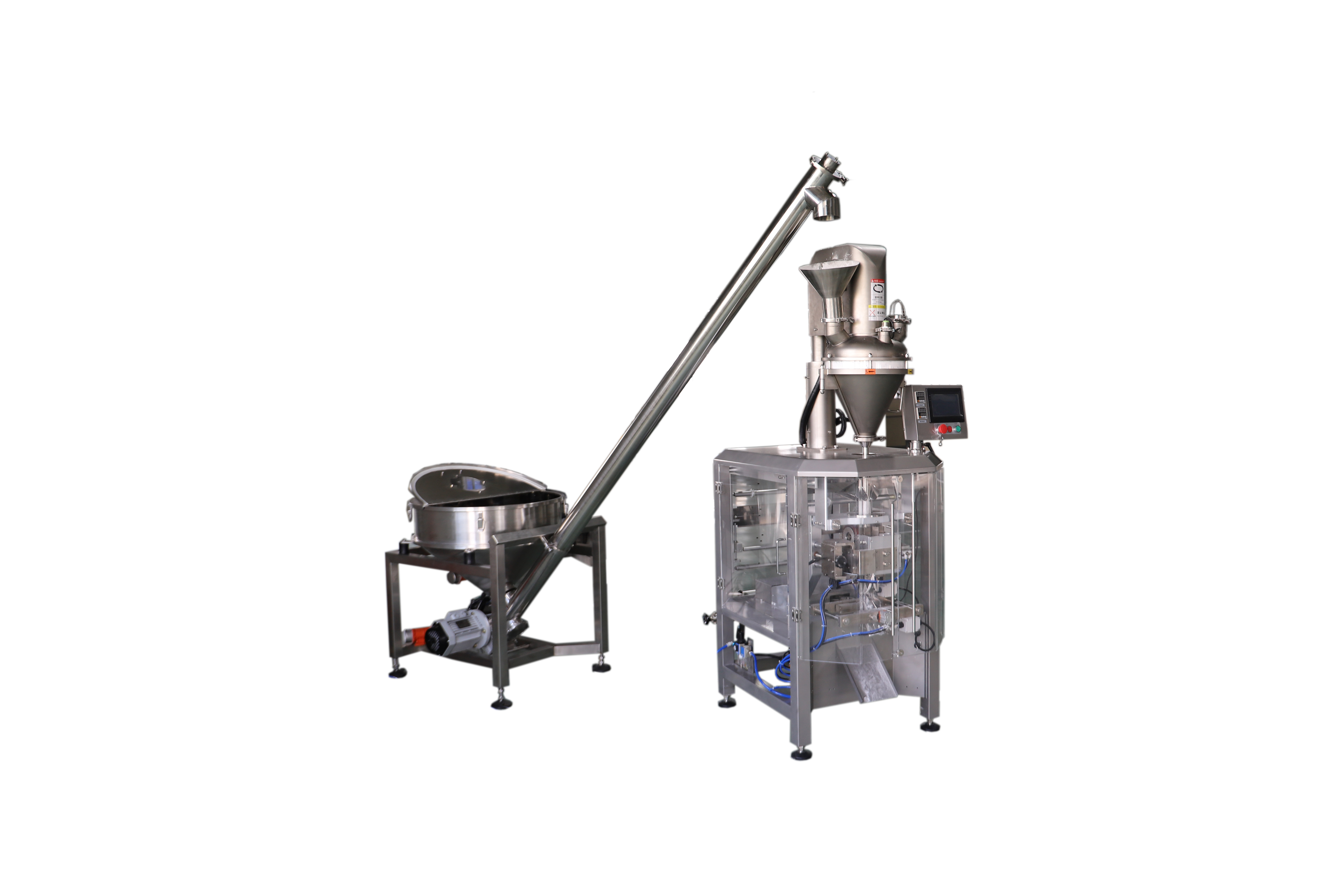 Möguleikinn á að samþætta við önnur kerfi er einn af flottustu eiginleikunum við þessar vélar. Ímyndaðu þér þetta: fjölhöfða vog setur rétta þyngd af dufti í poka, pokinn er innsiglaður strax og það heldur áfram í merkingaferlinu. Allt í einu mjúku ferli!