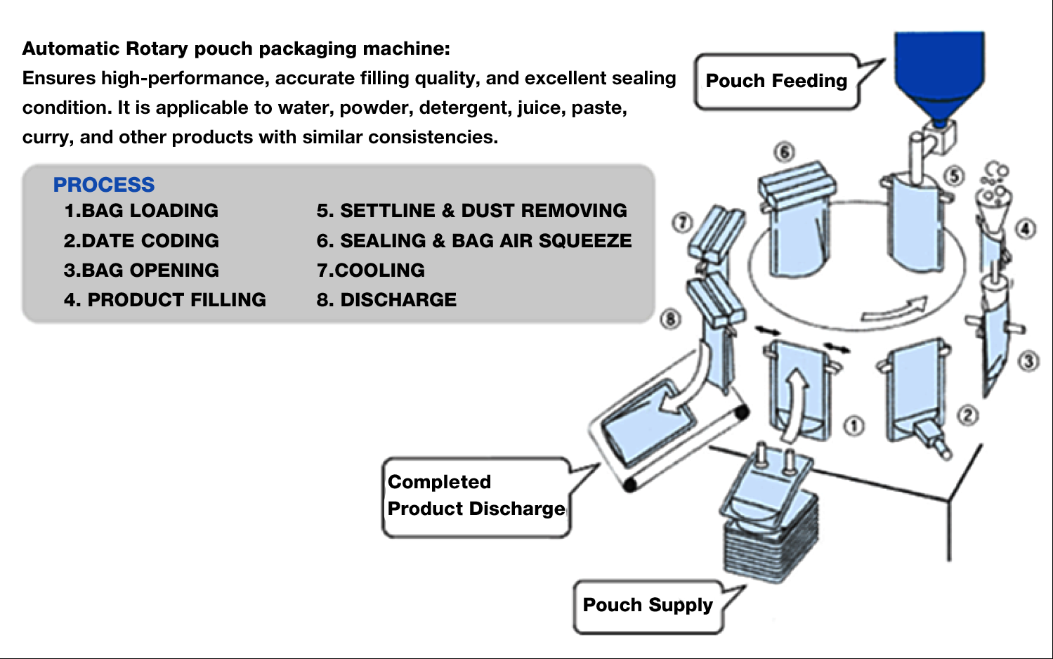 8. Hentar fyrir mismunandi lögun forgerða poka, doypack pokaþéttingu og pökkun.