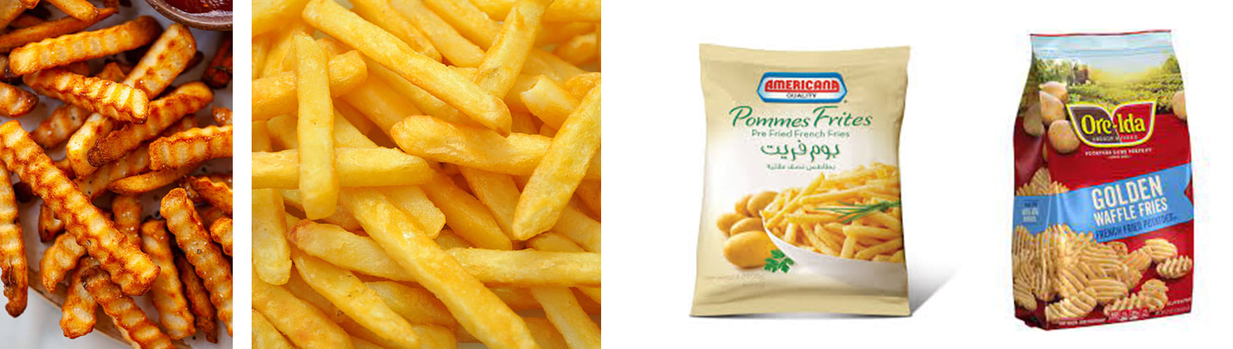 ទម្រង់បញ្ឈរដោយស្វ័យប្រវត្តិ បំពេញត្រា ដំឡូងបារាំង បង្កក ម៉ាស៊ីនវេចខ្ចប់ដំឡូងបារាំង ជាមួយឧបករណ៍ថ្លឹងក្បាលច្រើន។