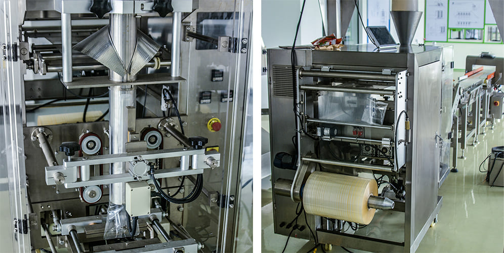 ម៉ាស៊ីន VFFS ឧបករណ៍ថ្លឹងទម្ងន់ច្រើនដំណើរការដោយប្រើក្បាលថ្លឹងជាច្រើនដើម្បីវាស់បរិមាណពោតលីងដែលចង់បានសម្រាប់កញ្ចប់នីមួយៗយ៉ាងត្រឹមត្រូវ។ បន្ទាប់មកម៉ាស៊ីនប្រើដំណើរការផ្សាភ្ជាប់ទម្រង់បញ្ឈរ ដើម្បីបង្កើតជាថង់ខ្នើយ ឬកាបូបស្ពាយ បំពេញវាជាមួយនឹងបរិមាណពោតលីងដែលបានវាស់ ហើយបន្ទាប់មកបិទវាដើម្បីធានាភាពស្រស់ និងការពារវាពីកត្តាបរិស្ថានដូចជា សំណើម អុកស៊ីសែន និងពន្លឺ។