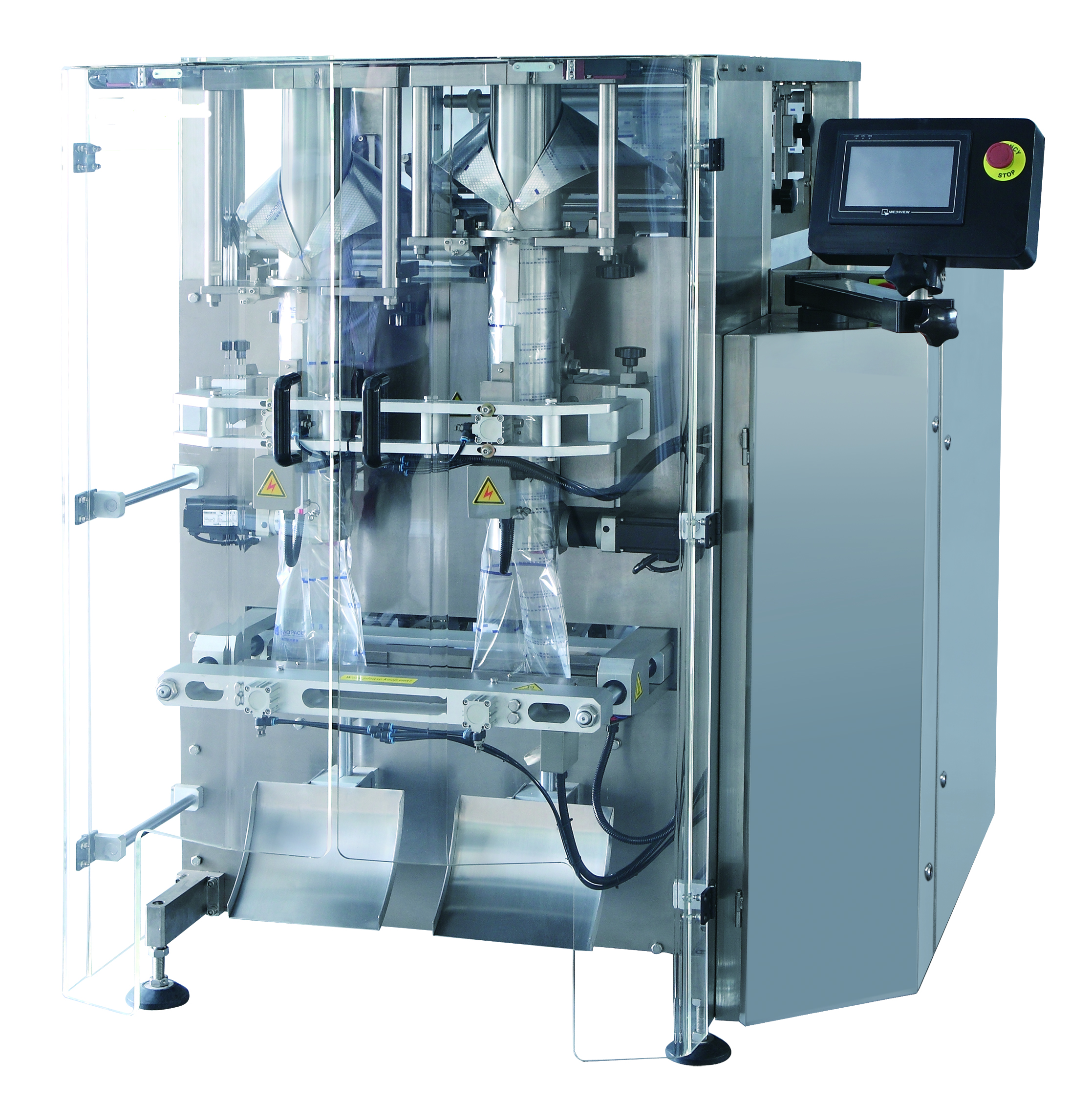 ម៉ាស៊ីនវេចខ្ចប់អាហារសម្រន់បញ្ឈរភ្លោះសម្រាប់ភ្ជាប់ថង់។