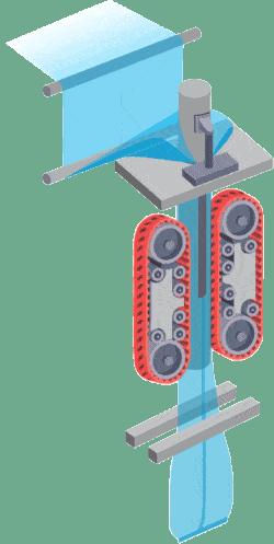 System ściągania folii: Folia jest przeciągana przez maszynę za pomocą pasów lub rolek, co zapewnia płynny i stały przepływ.
