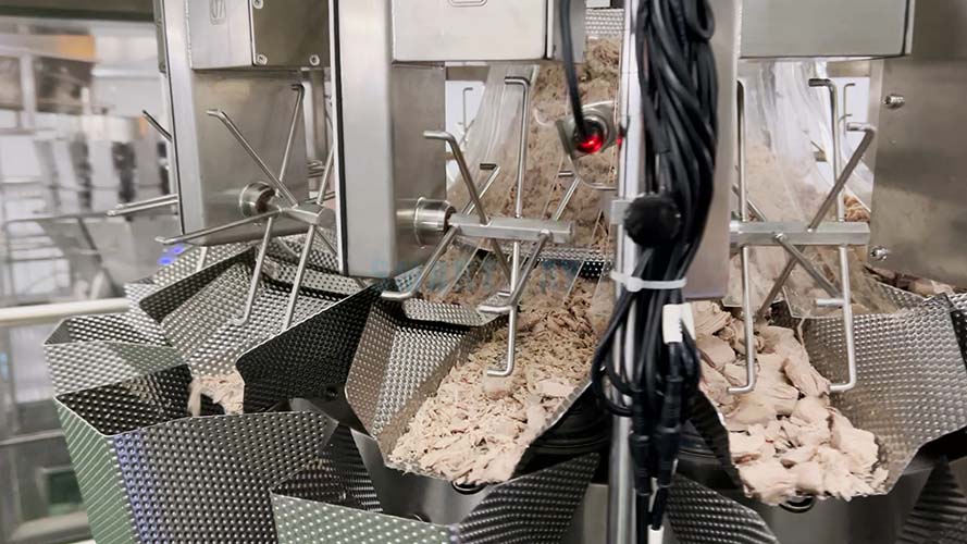 Multihead Weigher Precision: ملٽي هيڊ وزن وارو نظام شامل ڪري ٿو جيڪو پڪي ماپ کي يقيني بڻائي ٿو گلي پالتو جانورن جي خوراڪ جي حصن جي، جيتوڻيڪ چپچپا يا غير منظم شڪل واري شين لاءِ. هي سڌائي پراڊڪٽ جي ڏي وٺ کي گھٽ ڪري ٿي ۽ مسلسل پيڪيج جي وزن کي يقيني بڻائي ٿي، ٻنهي جي قيمت جي ڪارڪردگي ۽ گراهڪ جي اطمينان کي وڌائي ٿي.