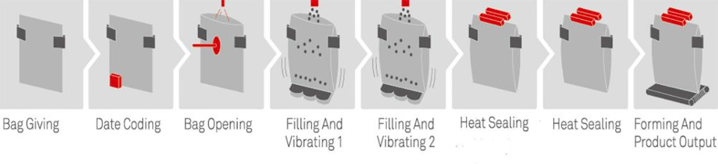 రోటరీ ప్యాకేజింగ్ మెషీన్కు కార్మికులు ప్యాకింగ్ లైన్లోకి ఖాళీ ప్రీమేడ్ పౌచ్లను అందించాలి. మెకానికల్ గ్రాబింగ్ పరికరాలు స్వయంచాలకంగా ప్రీమేడ్ పర్సును గ్రహిస్తాయి, కొలిచే పరికరం నుండి సిగ్నల్ను స్వీకరిస్తాయి మరియు వాటిని నింపి సీలు చేస్తాయి. రోటరీ యూనిట్ ఫిల్లింగ్ మరియు సీలింగ్ కోసం అనుకూలంగా ఉంటుంది.