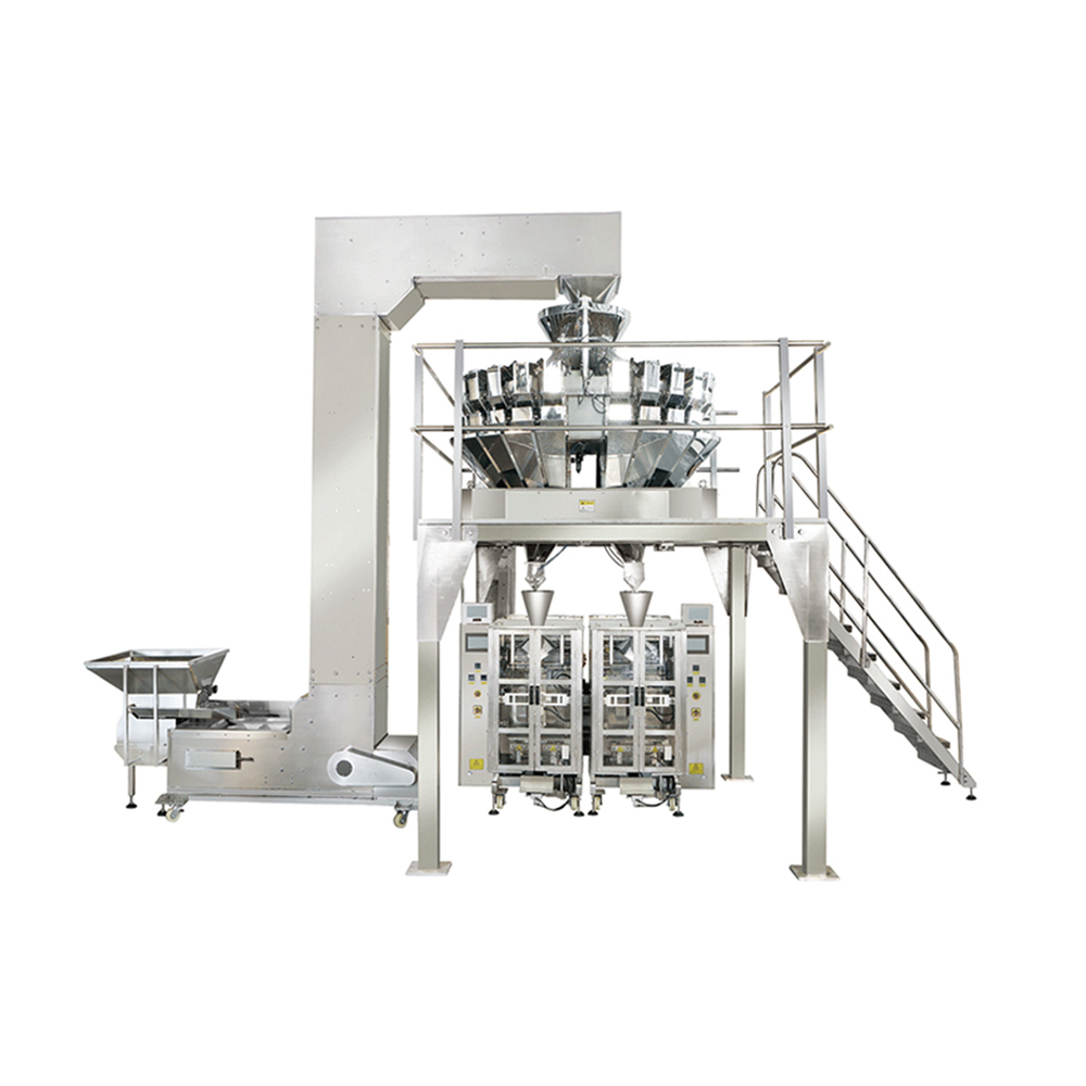 గ్రాన్యూల్ ఉత్పత్తుల కోసం మల్టీహెడ్ వెయిటర్తో కూడిన కవలల నిలువు ప్యాకింగ్ మెషిన్.